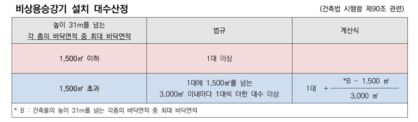 - 비상용승강기는 기존 승강기를 제외하고 추가설치 해야함.
